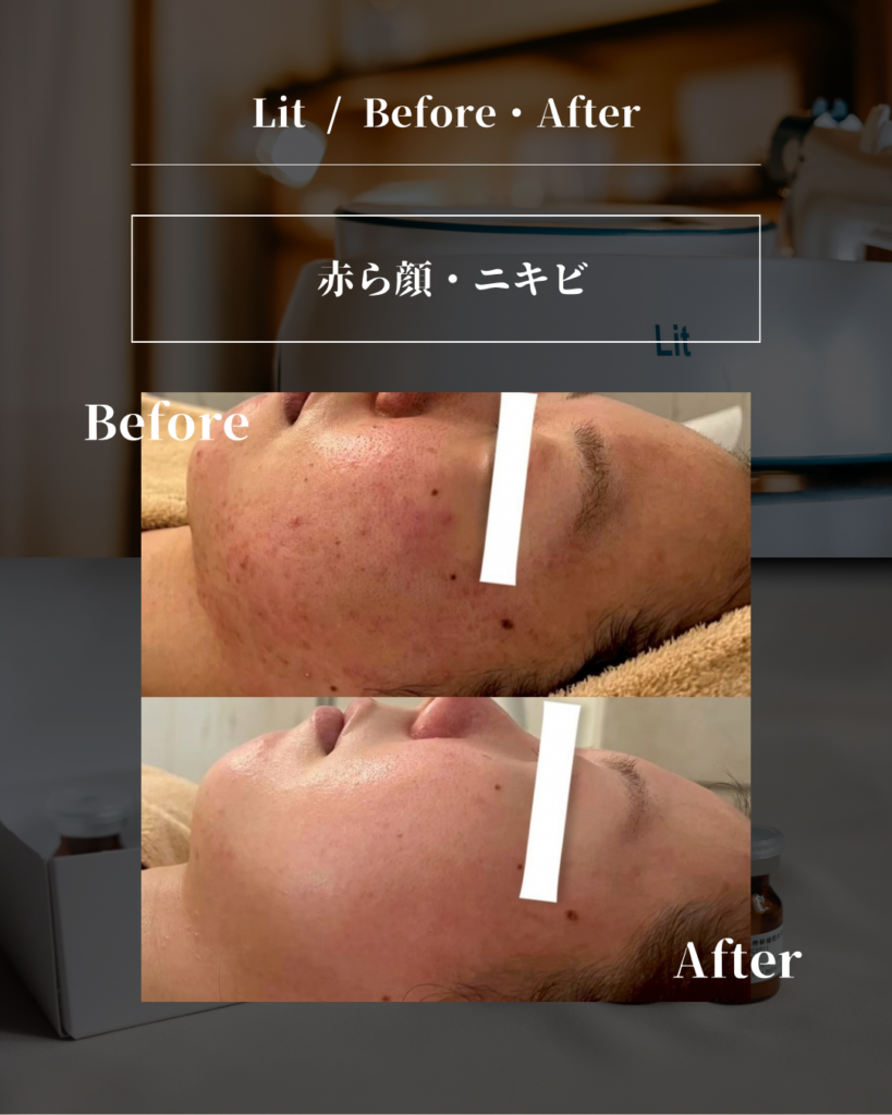 Lit 肌育成フェイシャルは首〜顔〜頭皮(腹部やバストにも)全体に幹細胞を導入し